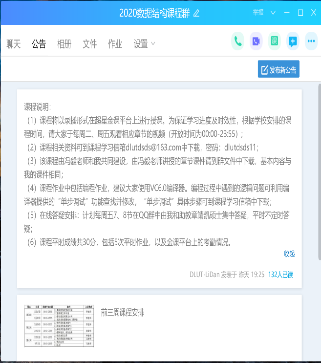冯毅和李丹两位老师本学期承担的数据结构课程选课学生人数较多,她们通过课程QQ群,建立起与每一位学生点对点、点对多的联系网络,采用大工超星金课平台作为线上教学的主要实施平台,针对线上教学的特点调整了课程教学计划,由任课教师分章节、分工录制了视频课件,将PDF课件、PPT课件、视频课件、教学计划大纲等各种教学资源及时发布上传到平台供学生下载学习,在最短时间内完成了大工超星金课平台上的课程建设和调试工作。
